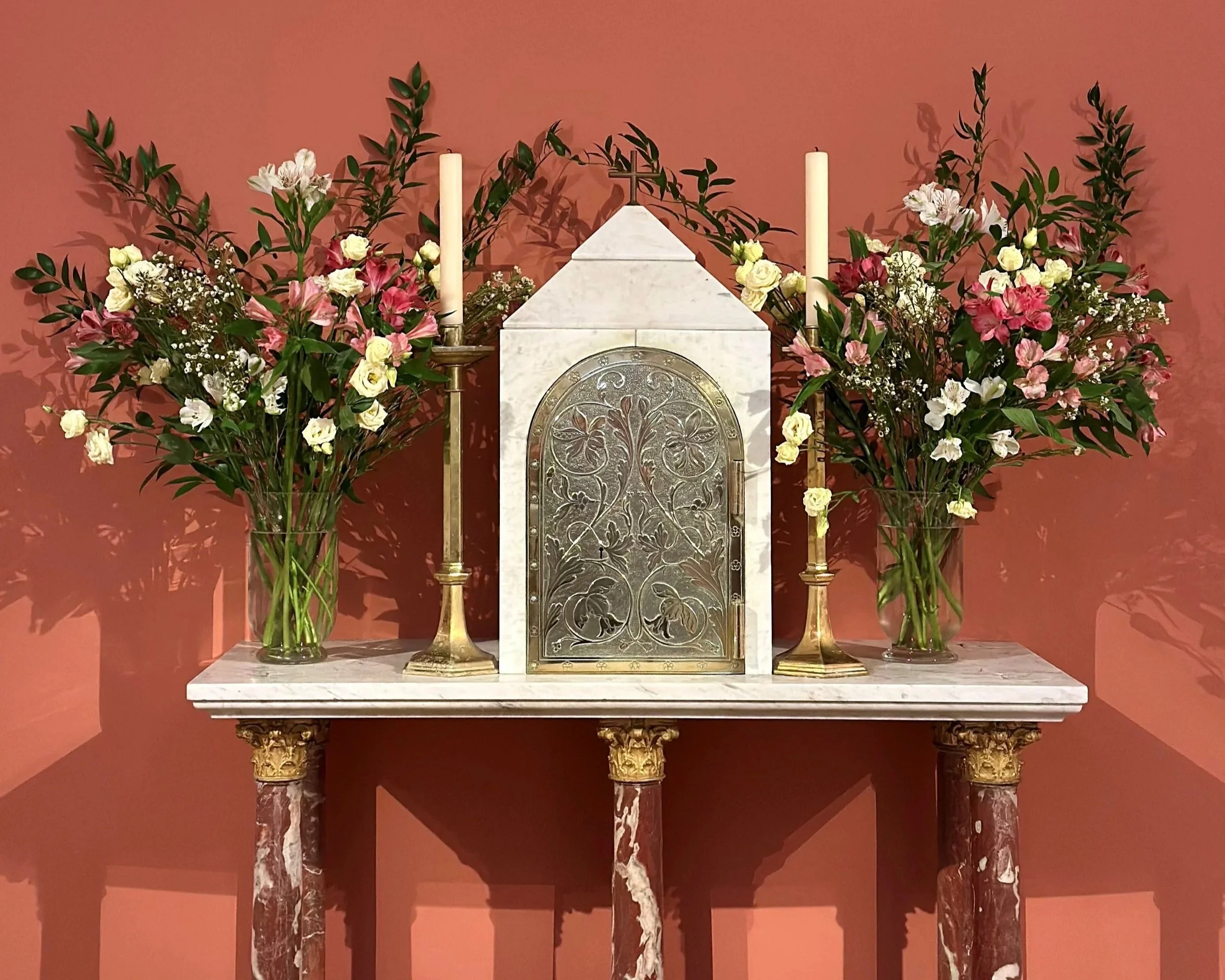 The look of the church and the solemnity of the Mass is much improved when the church is decorated, usually with flowers but sometimes with candles and other arrangements as well. We are fortunate to have volunteers within the parish who demonstrate considerable creativity and artistic skill in preparing the flowers and other arrangements.